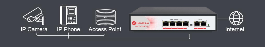 - SWITCH POE 4+2 4X POE 2X UPLINK 10/100MBPS DO KAMER EXTEND 65W WATCHDOG