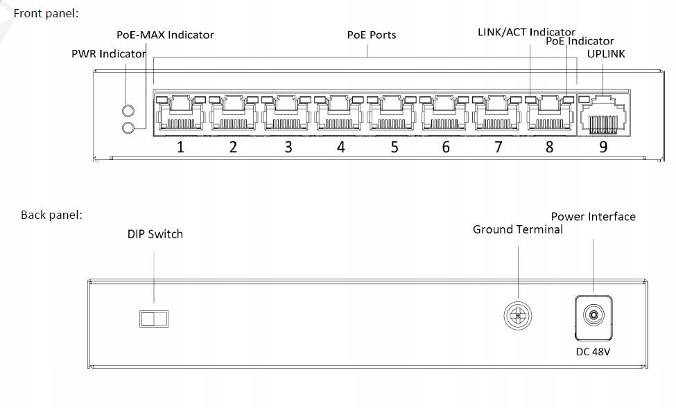 Diody LED: Power, PoE Max, PoE, Link/Act