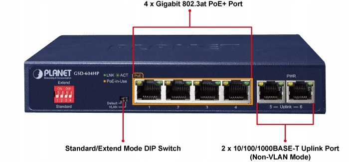 6 portów 10/100/1000Mbps Gigabit Ethernet