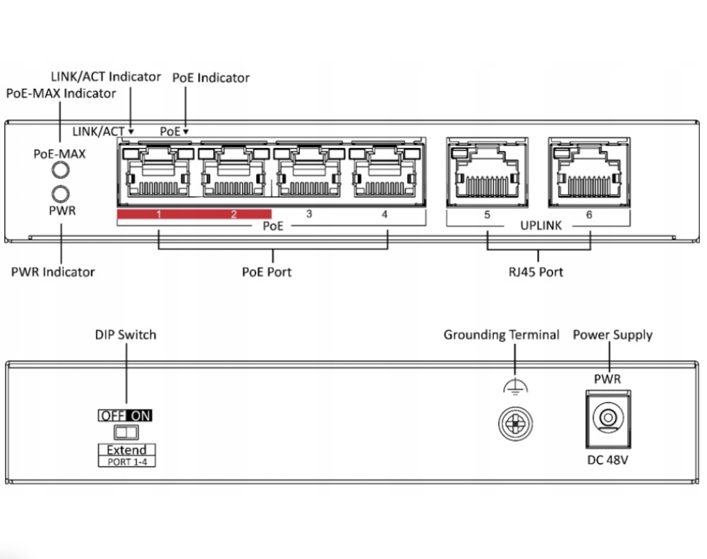 - Zasilanie: 48 VDC, 1.35 A (zasilacz w komplecie)