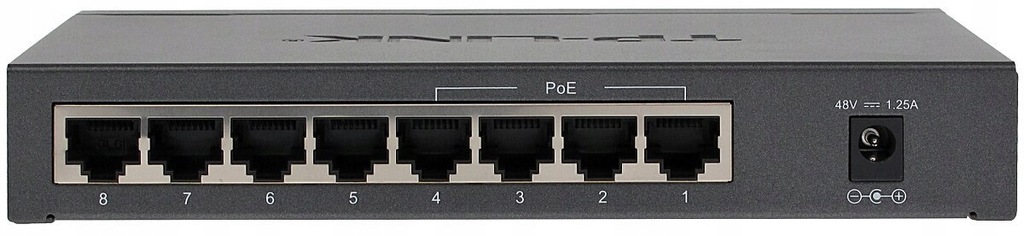 Porty LAN: 8x RJ45 ( 4 PoE ) Zarządzanie: Diody LED: Power, Link/Act, 1000 Mbps, PoE, max. PoE Szybkość transmisji: