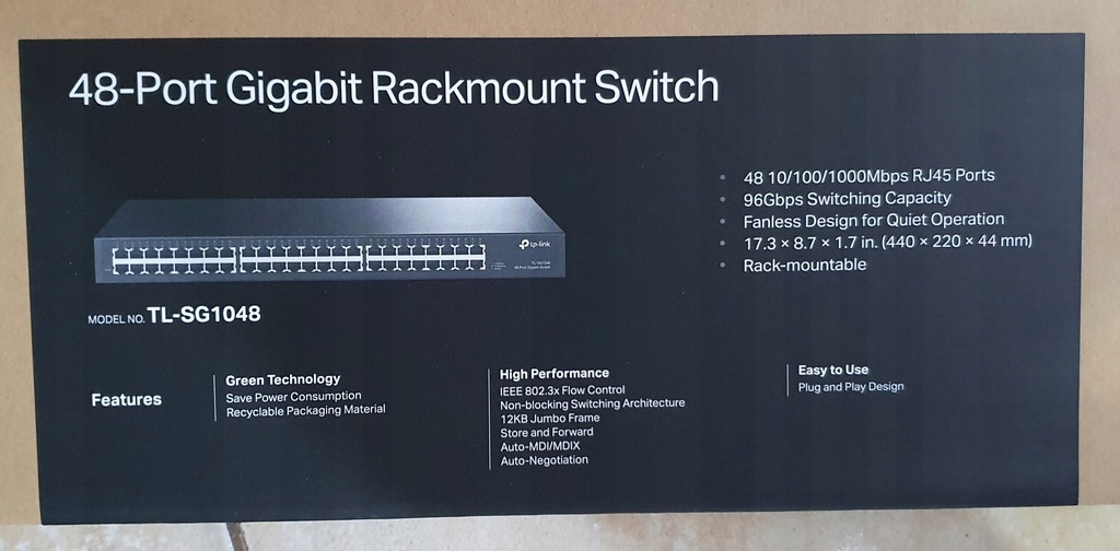 Urządzenie TL-SG1048 wykorzystuje architekturę płynnego przełączania pakietów danych w sieciach przewodowych. Wydajność przełączania wynosi 96Gb/s, dzięki czemu wykorzystywana jest maksymalna przepustowość łączy. Tablica adresów MAC o wielkości 16K zapewnia skalowalność nawet dużych sieci. Wsparcie standardu kontroli przepustowości dla trybu pełnego dupleksu (802.3x) oraz funkcji backpressure dla trybu pół dupleksu zapewnia płynny ruch sieciowy i niezawodną transmisję danych.