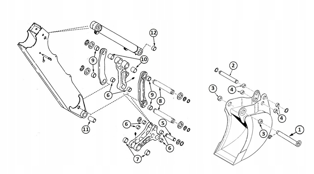 KOMPLET NAPRAWCZY MOCOWANIA TYLNEJ ŁYŻKI DO KOPARKO-ŁADOWAREK CASE 580/590 SERIA SK / SLE / LE / SM
