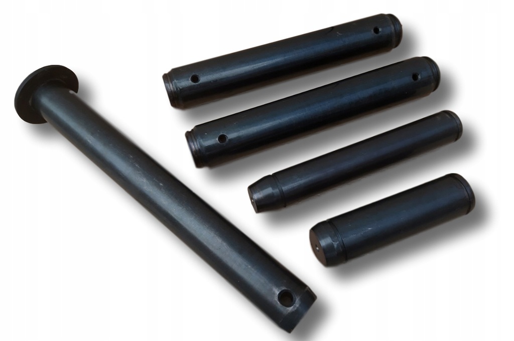 Sworznie i tuleje wykonane są z wysokogatunkowej stali, hartowane do 55-62 HRC.