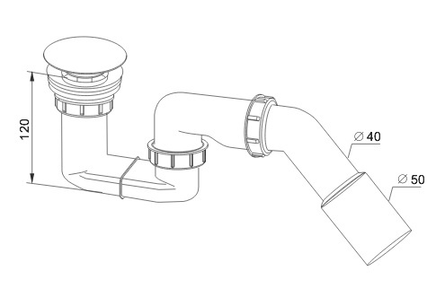 Syfon brodzikowy ze spustem klik-klak, korek metalowy, spust metalowy, do brodzików z otworem odpływowym 52mm.