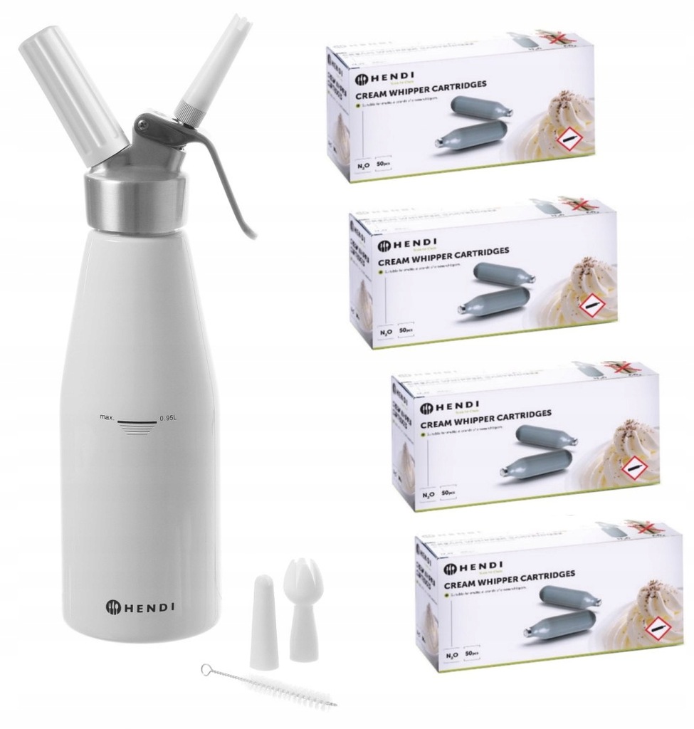 ✅ Syfon Do Bitej Śmietany 1l + Zestaw 200 Naboi N2O Hendi 588376