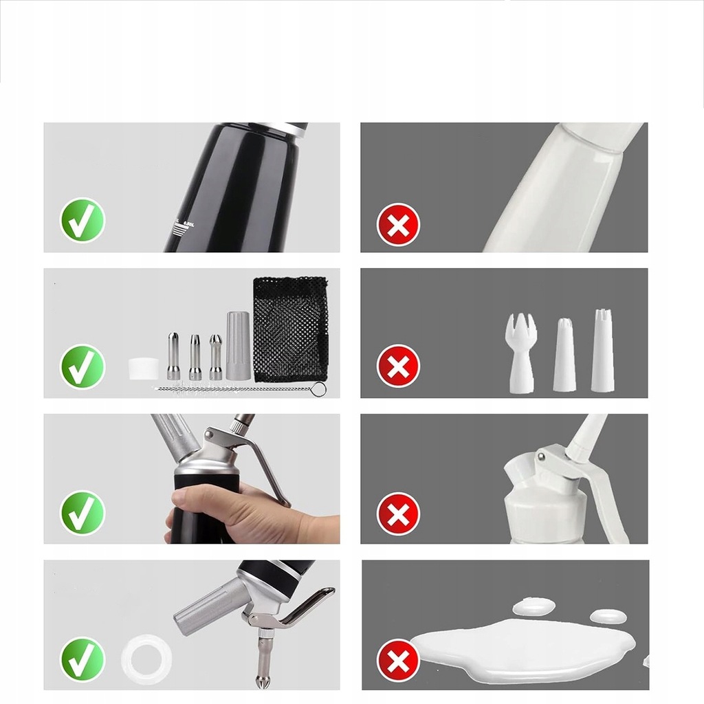 Ten dozownik śmietany jest idealny do dekorowania bitej śmietany, tortów urodzinowych, lodów, sera, ciast, koktajli i innych deserów. Będziesz zachwycony jego wszechstronnością i wygodą.