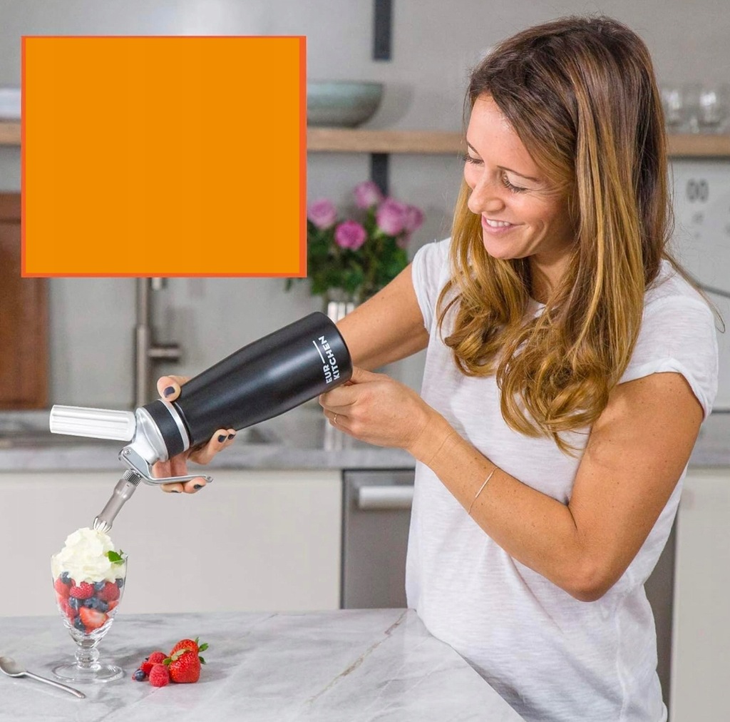 Z naszym dozownikiem stworzysz nie tylko bitą śmietanę, ale także lekkie sosy, musy czy pianki do kawy. Dołączona instrukcja krok po kroku oraz inspirujące przepisy pozwolą Ci od razu zacząć kulinarną przygodę.