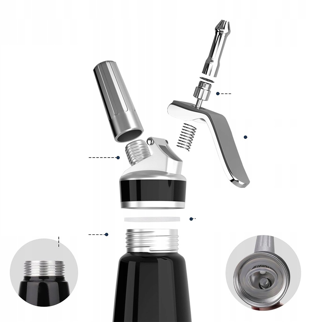 ❤️ Wygodny uchwyt aerografu do bitej śmietany: uchwyt aerografu dozownika śmietany jest wyposażony w solidną sprężynę, którą można szybko nacisnąć, aby uzyskać kremową konsystencję bez konieczności uciskania dłoni, oszczędzając energię i czas.