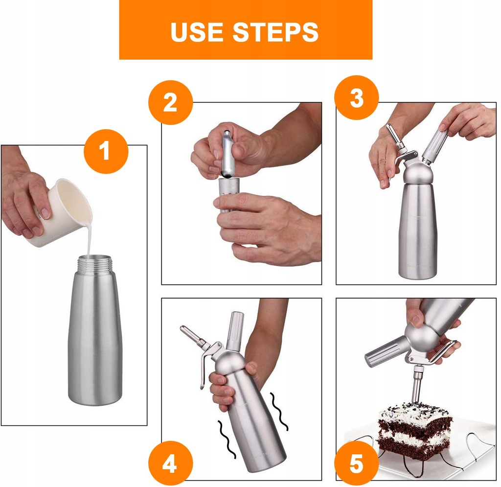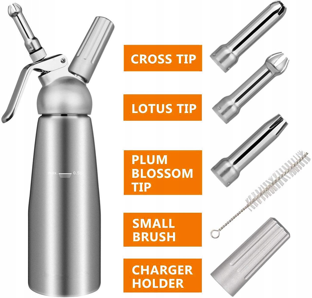 1. zakres dostawy nie obejmuje kapsułek N2O. Można je kupić online lub w dowolnym supermarkecie z wystarczającymi zapasami.
