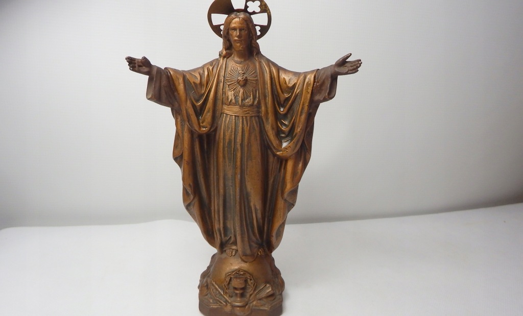 SYG.STARA FIGURKA PAN JEZUS CYNKAL 1,9KG WYS.26CM. STAN WIDOCZNY NA ZDJĘCIACH, W LEWEJ RĘCE UŁAMANE PALCE RESZTA OK DO WYCZYSZCZENIA .PROSZĘ SUGEROWAĆ SIĘ ZDJĘCIAMI Z GALERII,ZAPRASZAM NA MOJE INNE AUKCJĘ