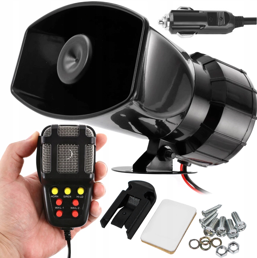 ✅SYRENA 7 -TONOWA 12V O MOCY DŹWIĘKU 100W Z FUNKCJĄ MIKROFONU.