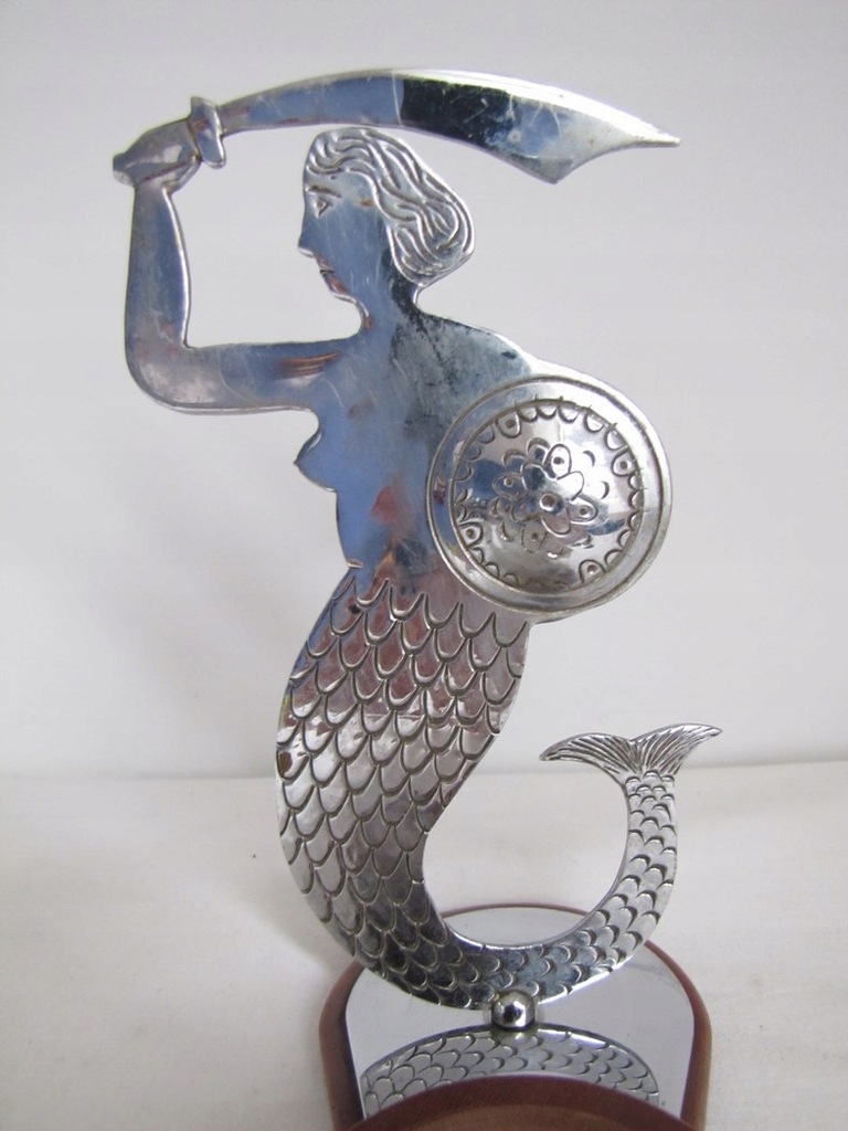 Przedmiot aukcji widoczny na zdjęciach , stan zachowania dobry. Wys całkowita 20 cm. Wystawiany był kiedyś podobny przedmiot z dedykacją dla Kierownika jakiegoś wydziału w FSO Żerań, zapewne wykonywano tam takie pamiątki w warsztatach. Gwint mocowania syrenki wystaje z podstawy - zapewne brakuje jakiegoś detalu wykończeniowego.