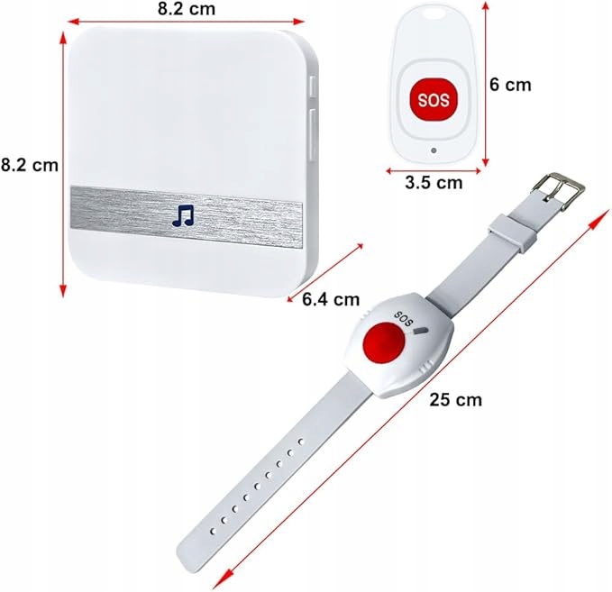 - Wygodne użytkowanie Idealny do stosowania jako alarm dla osób, które szybko potrzebują pomocy, takich jak osoby starsze, dzieci, osoby niepełnosprawne, kobiety w ciąży lub pacjenci, chorzy. Wystarczy nacisnąć przycisk połączenia, aby uzyskać terminową i przemyślaną opiekę. Można go również użyć jako dzwonek do drzwi. Szeroko stosowane w domu, szpitalu, społeczności, restauracji, biurze itp.