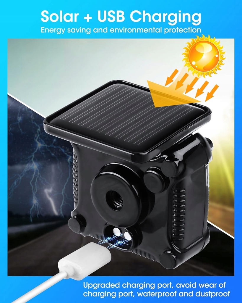 ✅ Zasilanie: Energia słoneczna / USB
