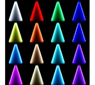 16 kolorów statycznych z możliwością regulacji intensywności (biały / czerwony / zielony / niebieski / pomarańczowy / jasny niebieski / indygo / miedź / jasny błękit / fiolet / wanilia / błękitny / fuksja / żółty / kobalt / różowy)