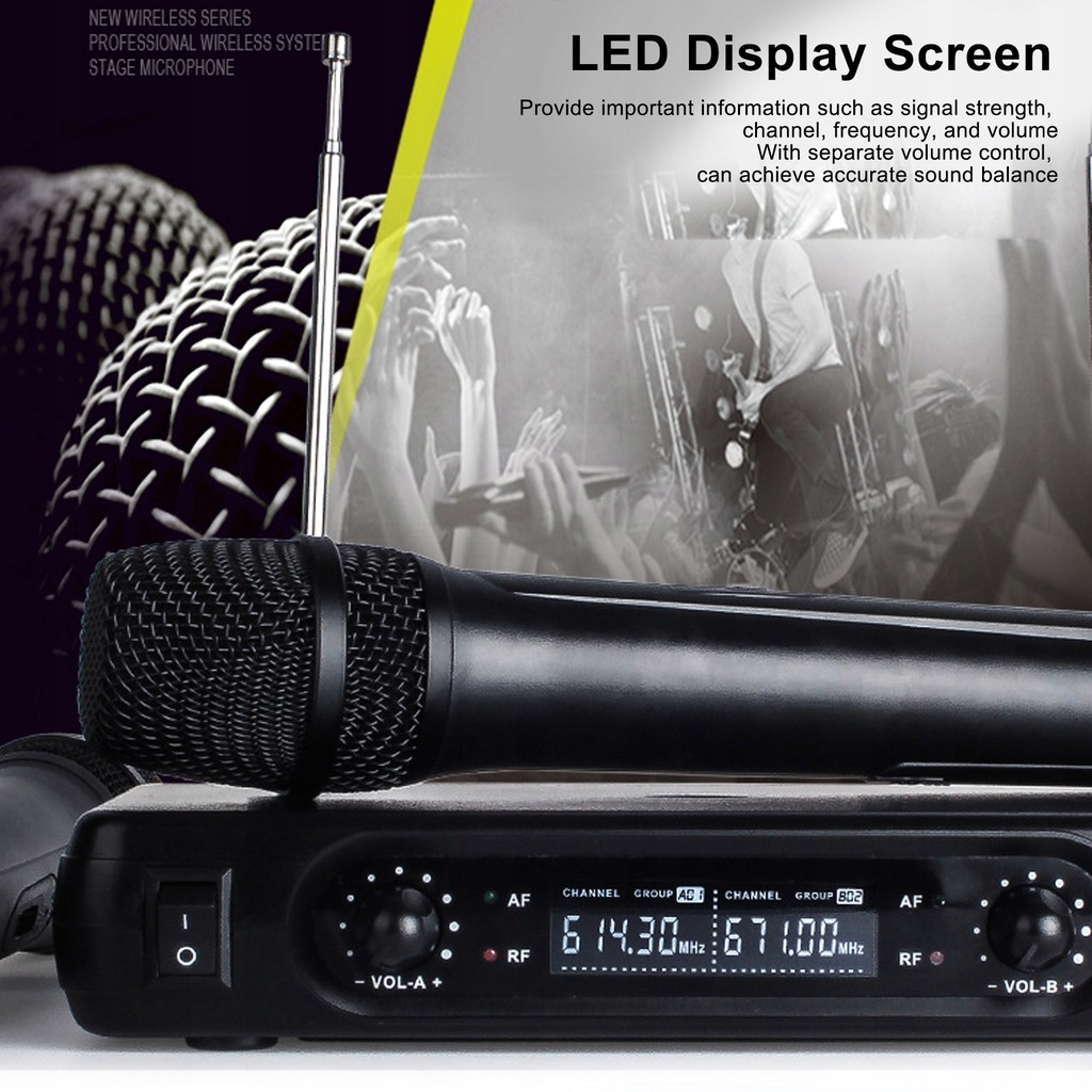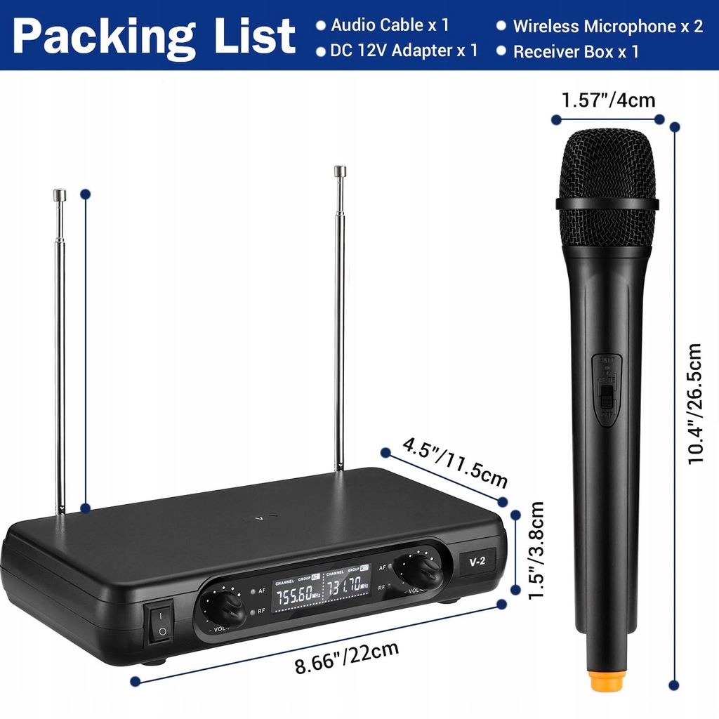 System podwójnego mikrofonu bezprzewodowego Odbiornik z wyświetlaczem LED System mikrofonu ręcznego VHF 110-240 V