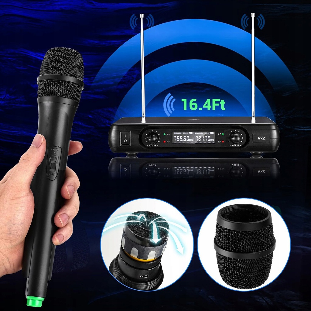 4. [Ulepszona jakość dźwięku] Każdy mikrofon w systemie ma udoskonaloną konstrukcję obwodu, aby płynnie wychwytywać i przesyłać dźwięk, zapewniając czysty dźwięk bez przerw, syków i sprzężeń.
