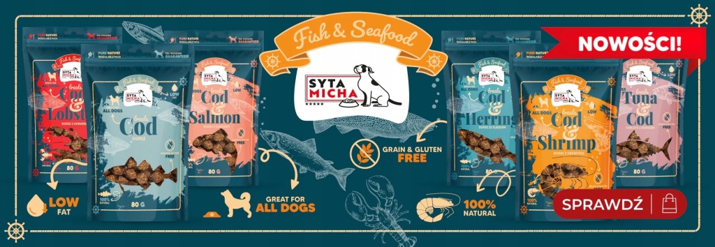Syta Micha Fish & Seafood przysmaki z krewetką - duet, który działa niczym eliksir wiecznego zdrowia i witalności dla Twojego psa! �🦐🐟