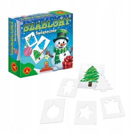 „Szablony Świąteczne” od Alexandra to 8 wzorów (w pozytywie i negatywie), dzięki którym Twoje dziecko w łatwy sposób odwzoruje sylwetki związane ze świątecznym czasem. W pudełku znajdziemy wszystko, co potrzebne do stworzenia wyjątkowej pracy. Bloczek kartek oraz ołówek pozwolą przystąpić do dzieła zaraz po otwarciu zabawki. Dołączony zestaw kredek pozwoli na dowolne ozdobienie odwzorowanego kształtu, a nawet na stworzenie całego wspaniałego obrazka.