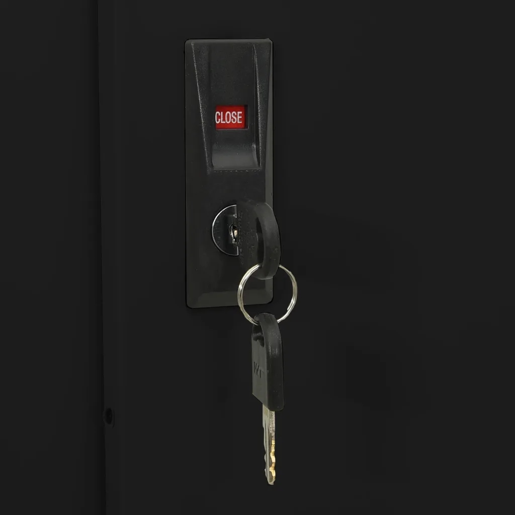 Pozbądź się bałaganu z biura za sprawą tej szafki! Szafkę tę wykonano ze stali, dzięki czemu jest niezwykle mocna i trwała. Przesuwne drzwi pozwalają na jej łatwe otwieranie i zamykanie. Za sprawą przestawnych półek w szafce można przechowywać teczki i segregatory o różnych rozmiarach. Mebel ten ma również zamek, aby chronić Twoje dane przed osobami nieupoważnionymi.
