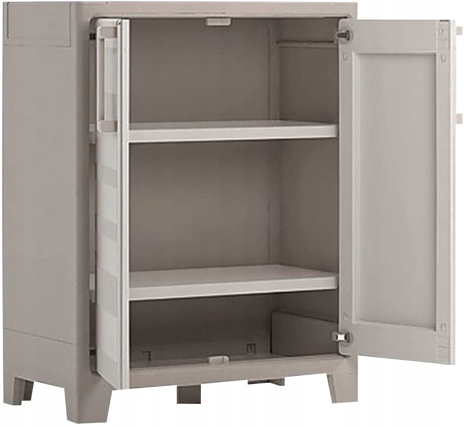 Szafka ogrodowa jest odporna na promieniowanie UV oraz wodę dzięki czemu sprawdzi się w każdym miejscu na świeżym powietrzu, począwszy od balkonów po rozległe tarasy. Można ją także umieścić w pomieszczeniach. Wykonana z wysokiej jakości plastiku (PP) szafka jest wytrzymała, niewymagająca konserwacji i odporna na warunki pogodowe. Zamykany mebel wyposażono w 2 regulowane półki. Dodatkowa stopka w dolnej części szafki zwiększa stabilność.