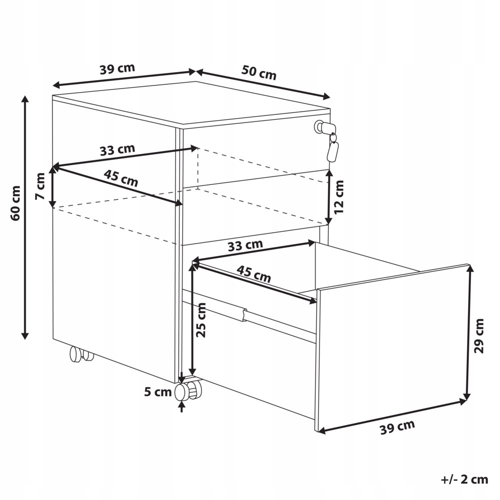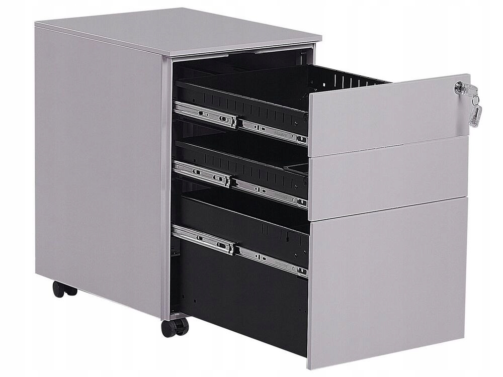 Utrzymaj porządek w swoim domowym biurze za pomocą tej industrialnej szafki. Wyposażona w 3 szuflady o różnej pojemności, idealnie sprawdzi się jako miejsce do przechowywania niezbędnych dokumentów, raportów i tym podobnych rzeczy. Wszystkie szuflady zamykane są za pomocą kluczyka, więc nie musisz martwić się o zawartość szafki. Mebel wyposażony jest także w kółka, dzięki czemu możesz zmienić jego położenie bez większych problemów. Całość wykonana jest ze stali, przez co szafka jest wytrzymała i odporna na uszkodzenia.