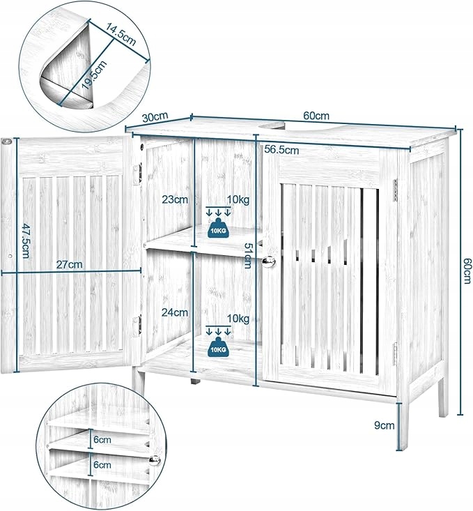 ✔️Podwójne drzwiczki z magnetycznym zamknięciem otwierają się lekko i cicho, a regulowana półka w środku pozwala dopasować wnętrze szafki do Twoich potrzeb. Bambus jest materiałem odpornym na wilgoć, więc nie musisz się martwić o trwałość nawet w najbardziej parującej łazience 🌫️🚿.