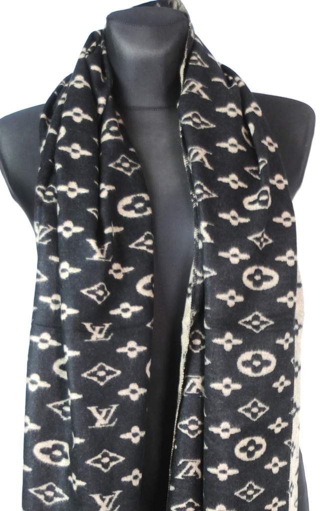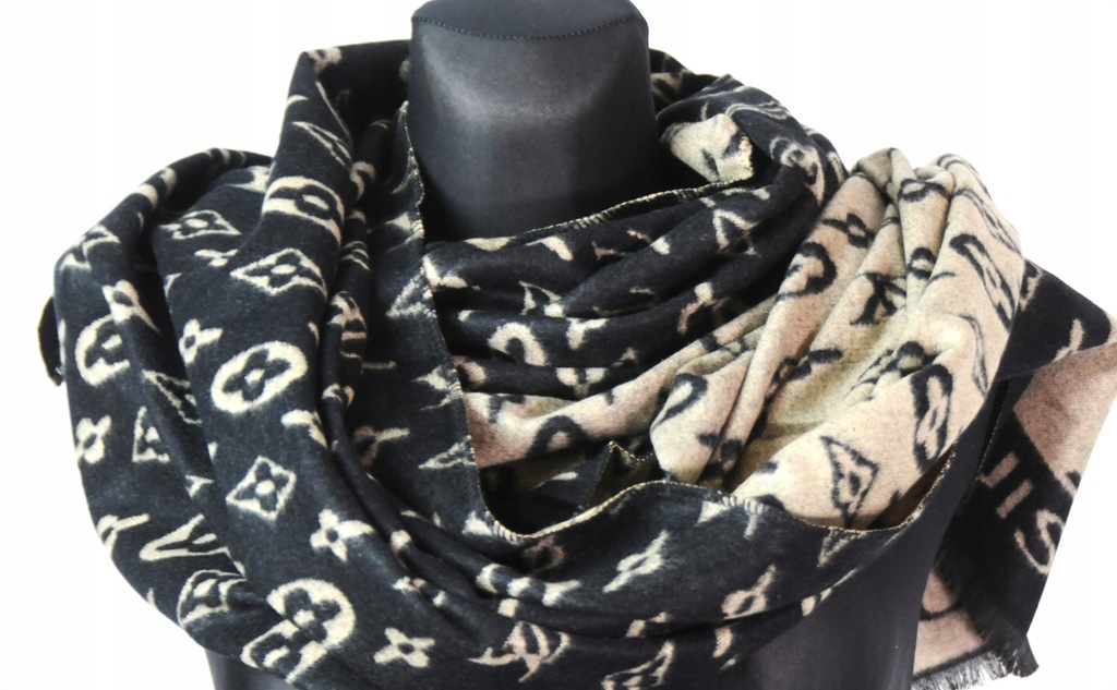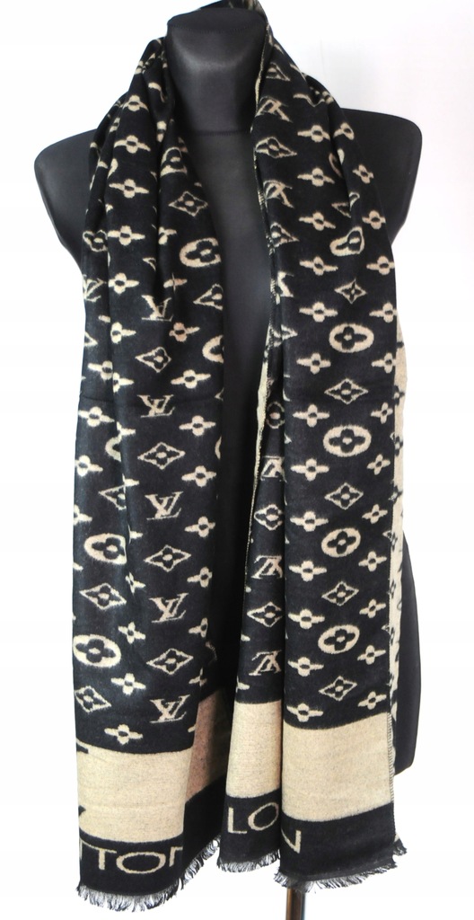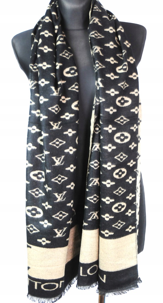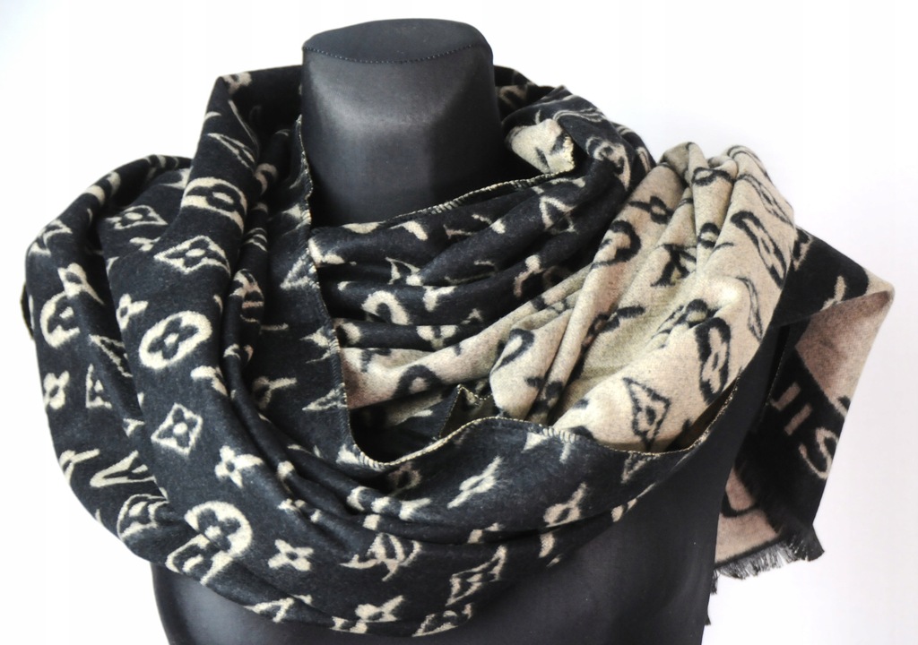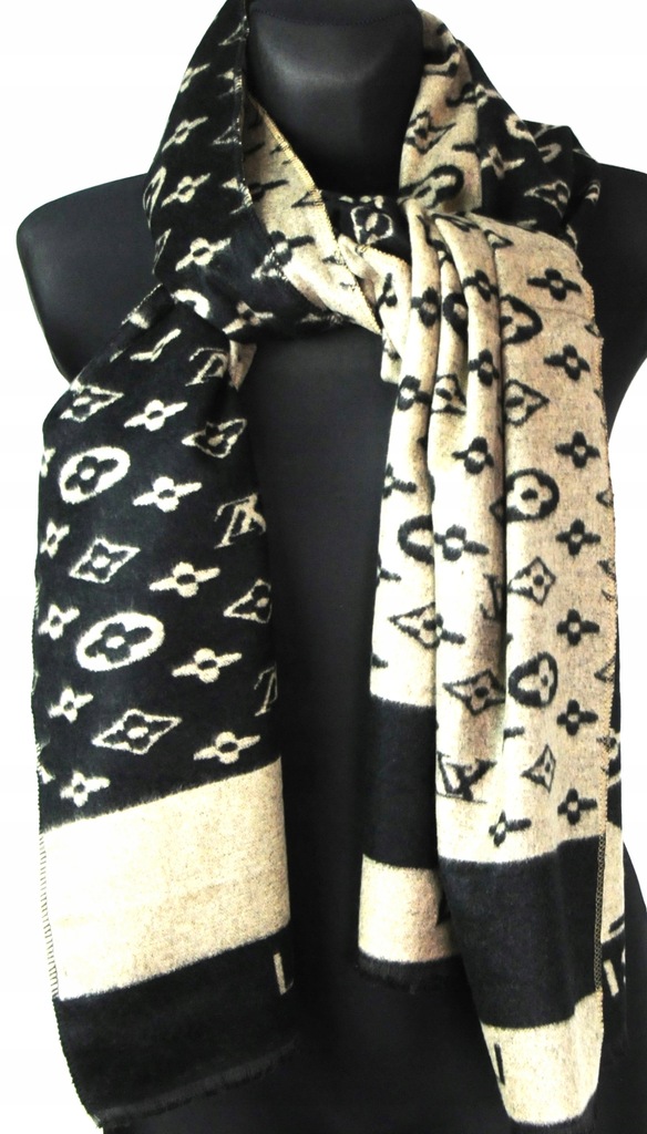 SZAL KASZMIROWY 100% MĘSKI WYPRZEDAŻ ECRU GRAFI LV (14909408065)