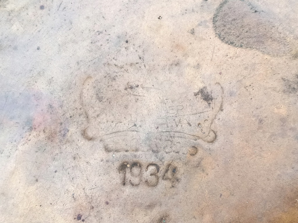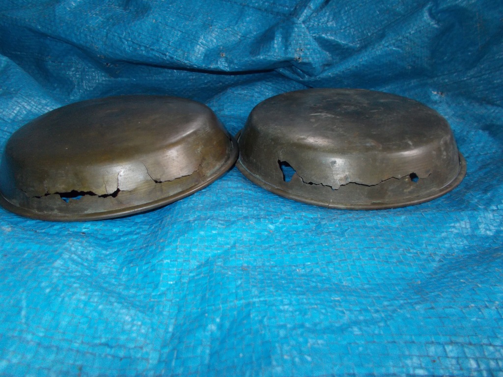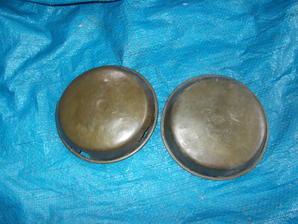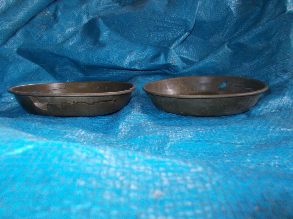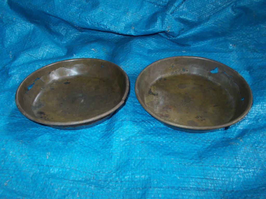 mosiężne , cena za 2 sztuki , średnica ok. 16 cm , obie sygnowane J. SPERLING 1934 , sygnatury są trochę wytarte , wgniecenia , pęknięcia i ubytki