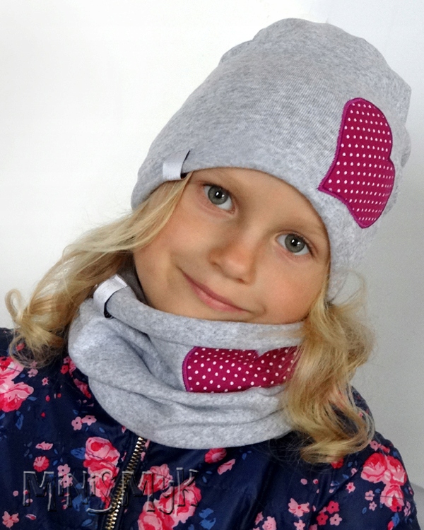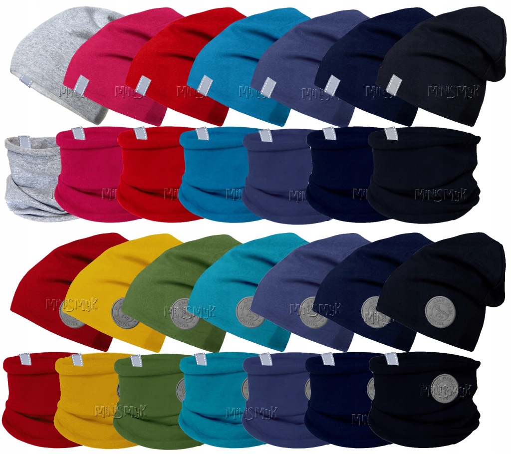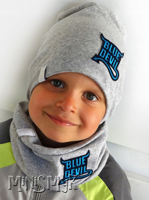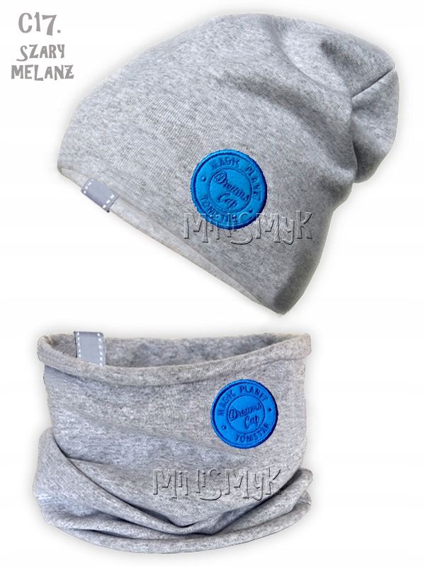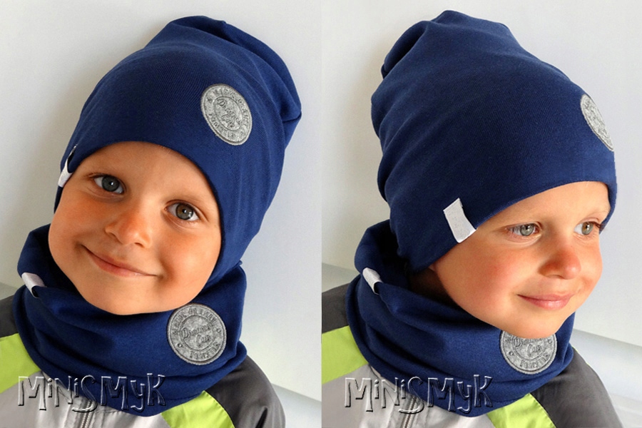 Komplet jednowarstwowy od firmy MINISMYK w którego skład wchodzi, czapka i tuba/komin.