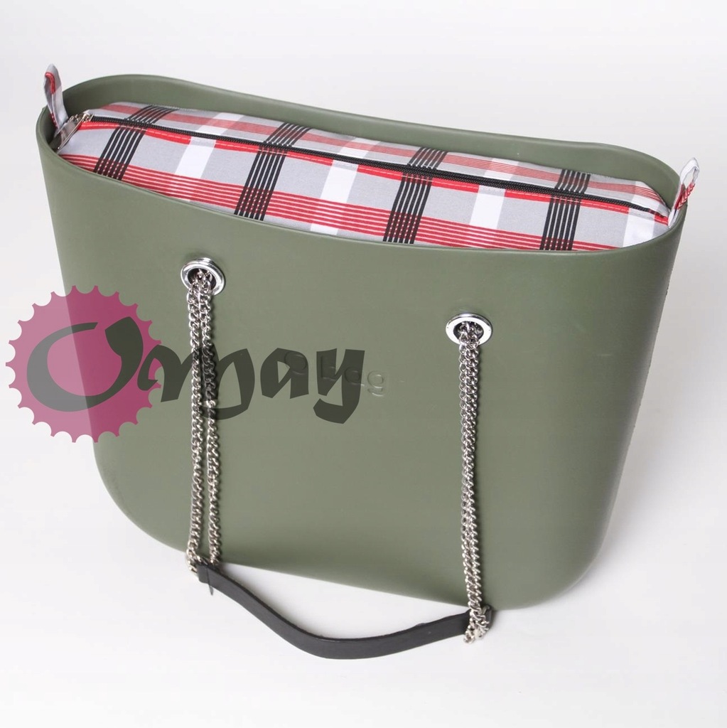 ➡️Szary organizer do OBAG STANDARD krata czerwony czarny 2 kieszenie OMAY⬅️