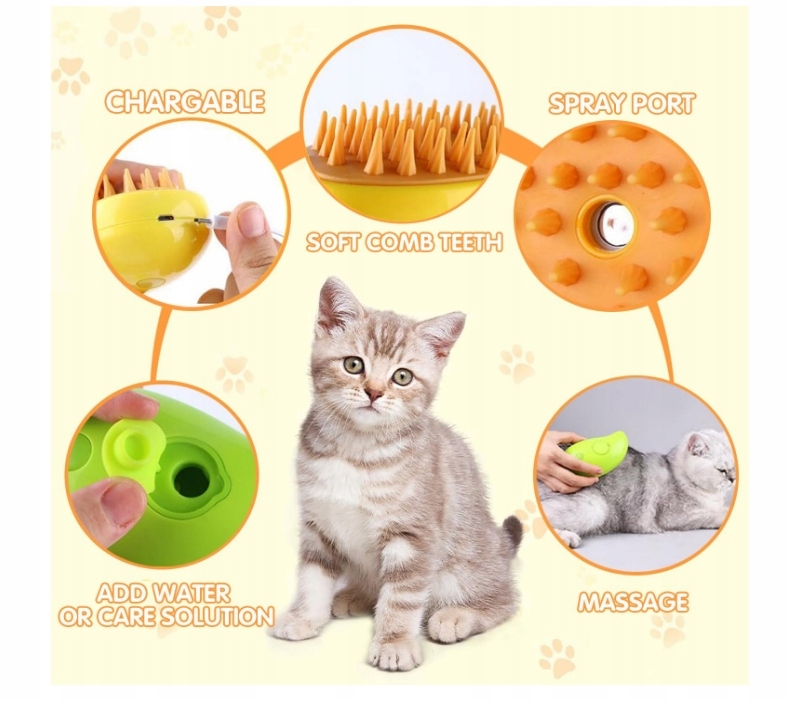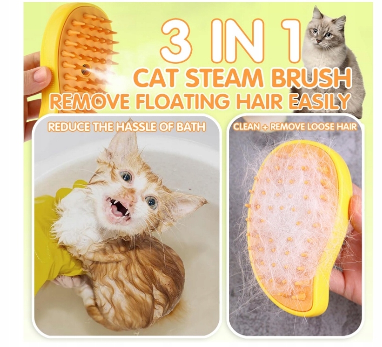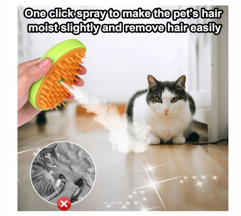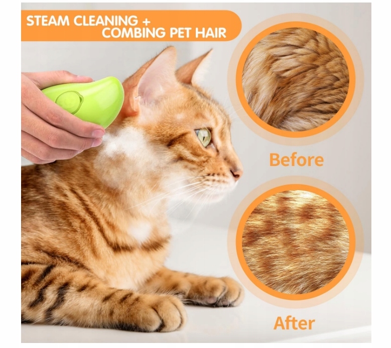 ⭐ Szczotka Parowa wykorzystuje delikatny strumień pary wodnej, aby delikatnie nawilżać sierść Twojego kota podczas czesania. To pomaga w rozluźnieniu kołtunów i zapewnia miękką i błyszczącą sierść.