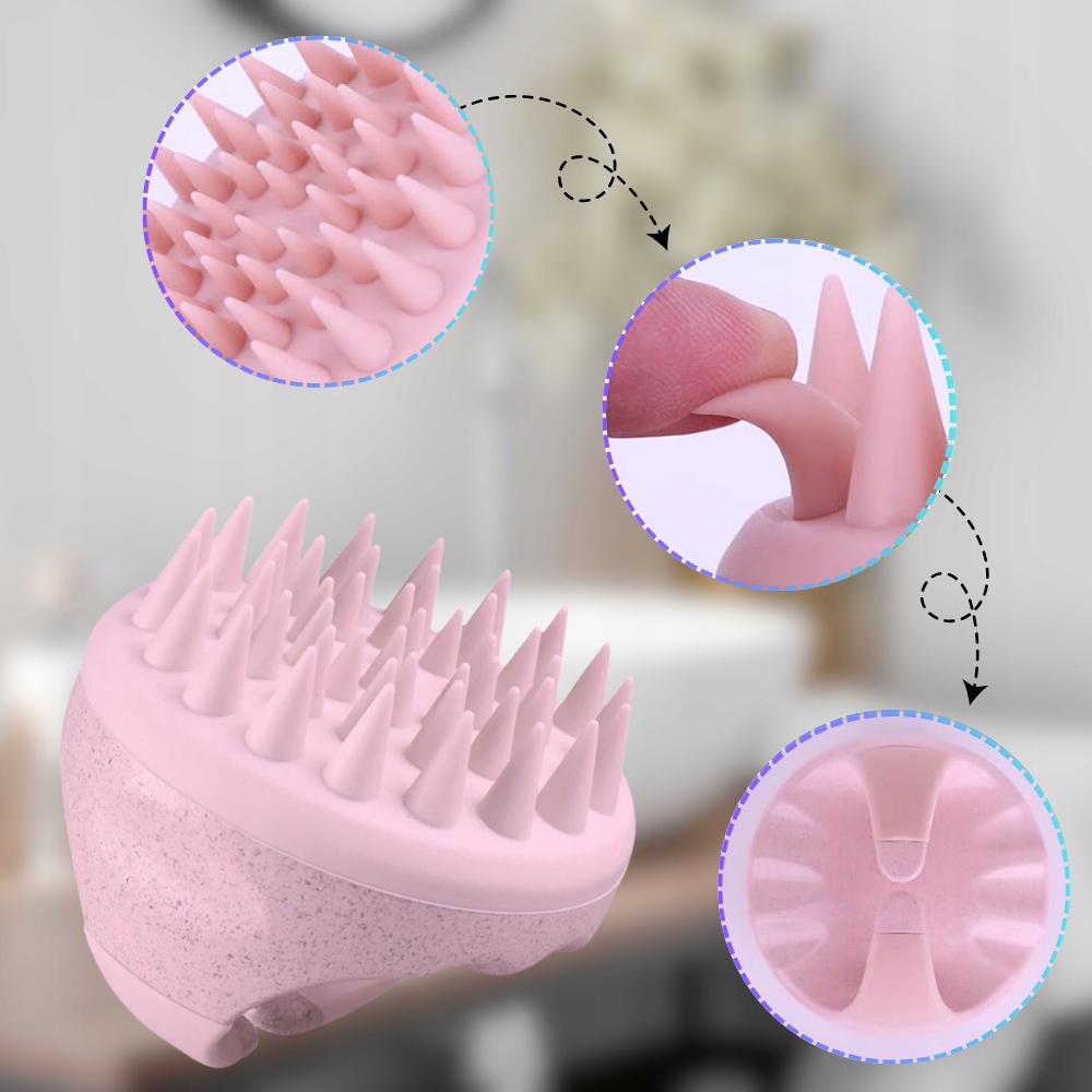 - Dokładne oczyszczanie: Specjalnie zaprojektowane wypustki skutecznie usuwają zanieczyszczenia i resztki produktów, zapewniając czystą i zdrową skórę głowy.