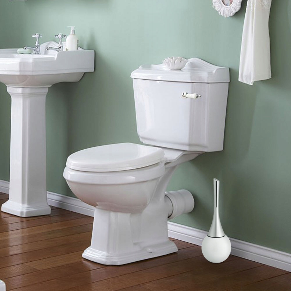 Zestaw kreatywnych uchwytów na szczoteczki do czyszczenia toalety łazienkowej z podstawą ze stali nierdzewnej (biały)