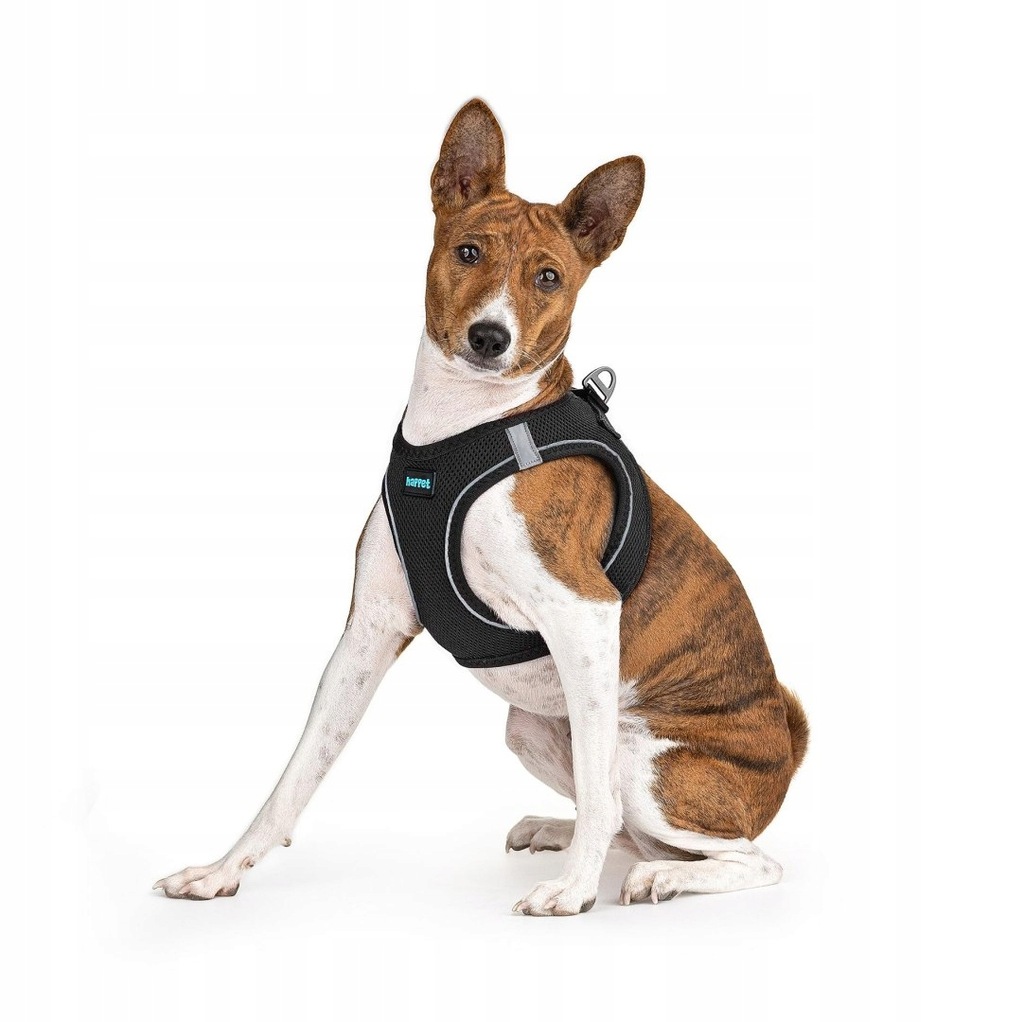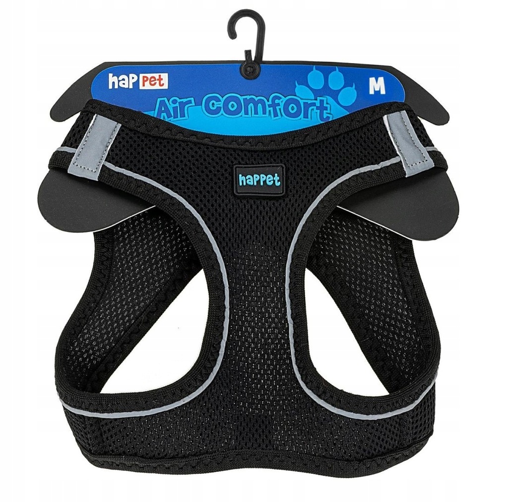 Szelki Air Comfort posiadają obręcz szyjną i piersiową z łączeniem na klatce piersiowej i plecach, zostały wykonane z solidnego, sztywnego materiału przepuszczającego powietrze, z odblaskowymi elementami. Zapinane są dwuetapowo, na plastikową klamrę oraz rzep.