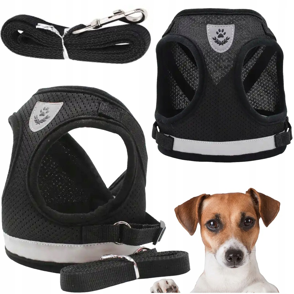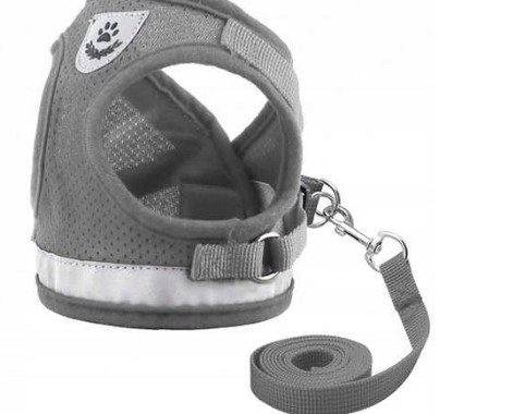 SZELKI BEZUCISKOWE SPACEROWE REGULOWANE ODBLASK DLA KOTA + SMYCZ ROZMIAR XS