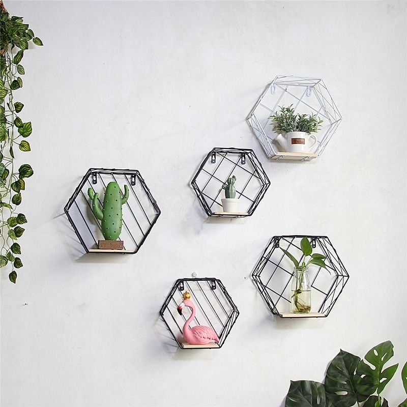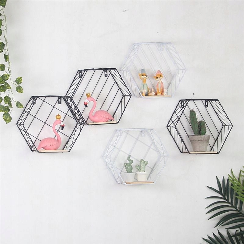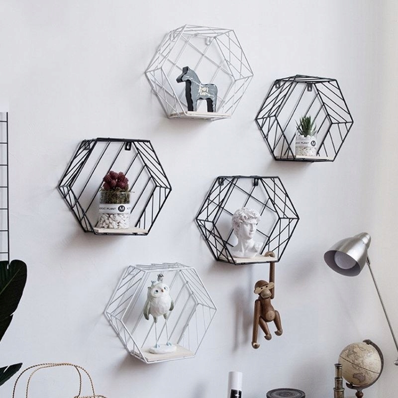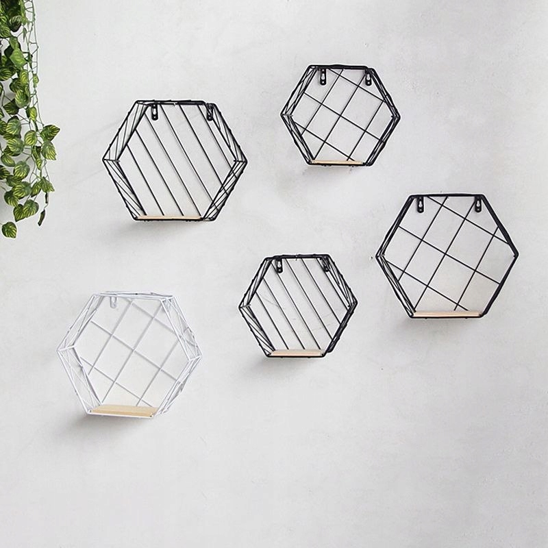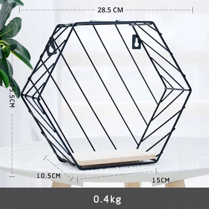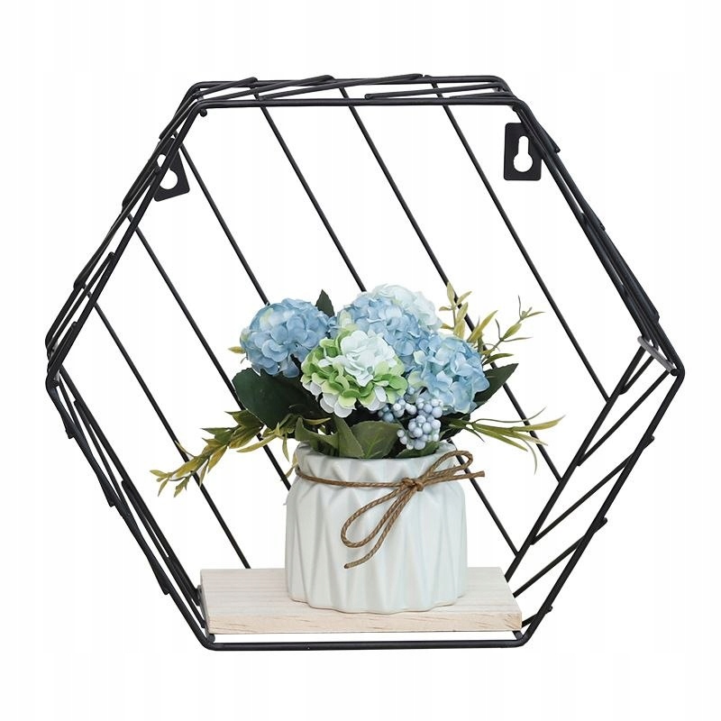 Sześciokątna półka dekoracyjna, styl LOFT - czarna