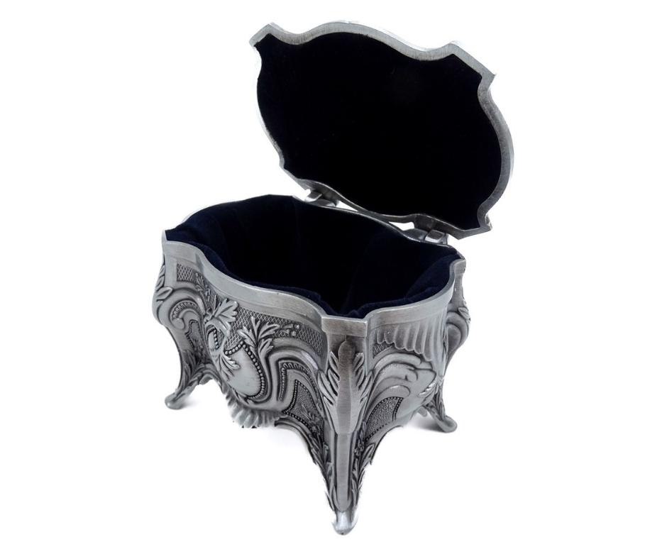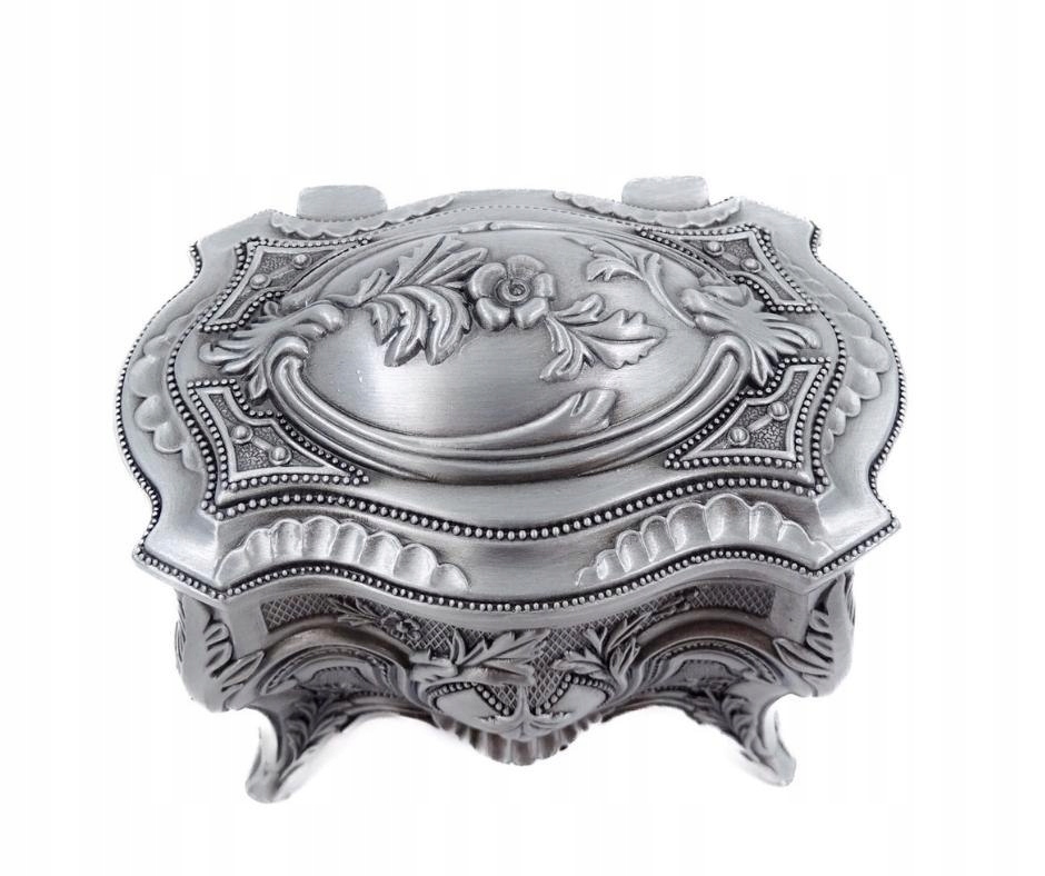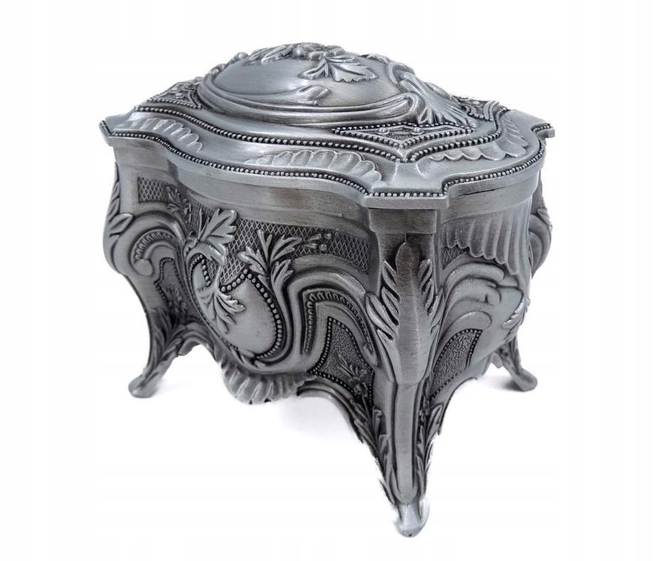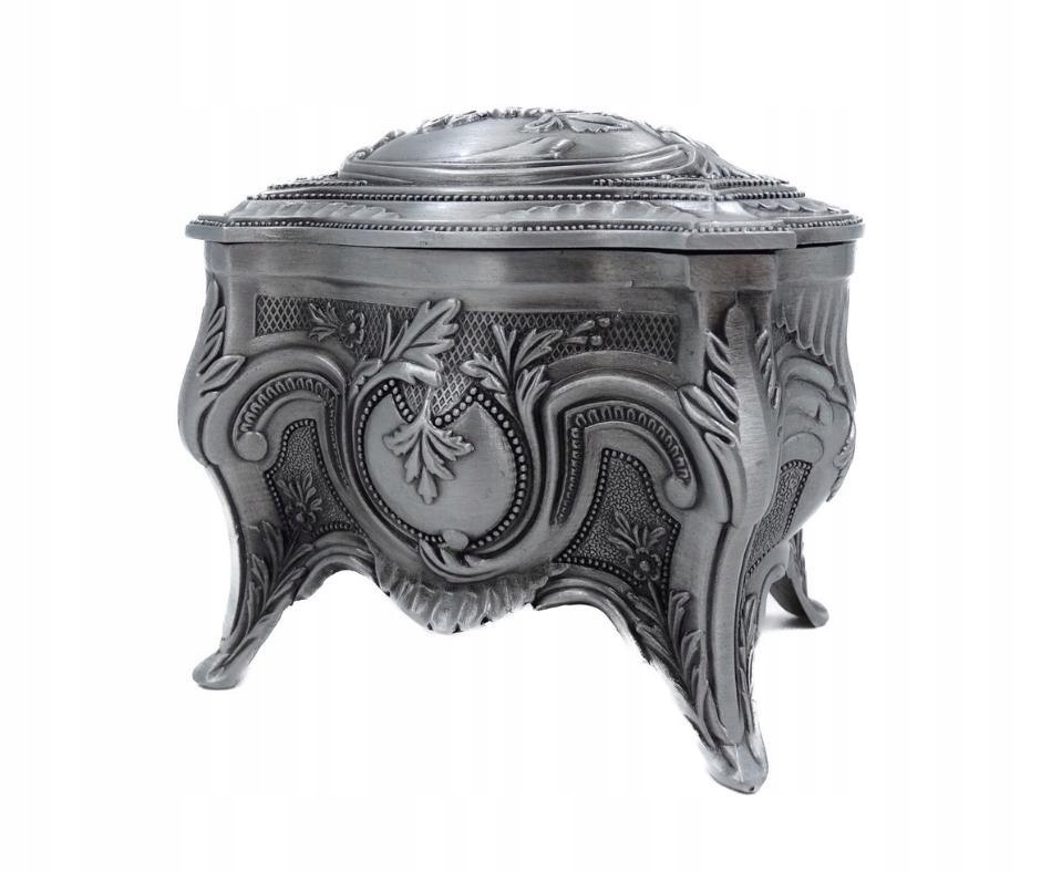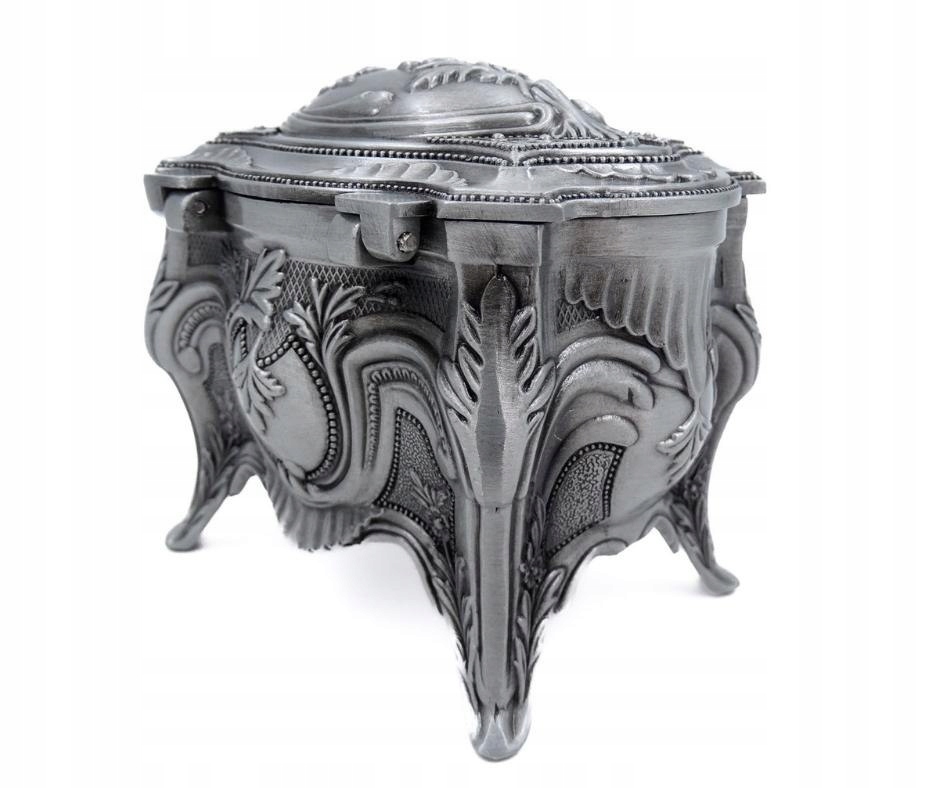 Elegancka szkatułka wykonana z metalu. Świetnie sprawdzi się do przechowywania cennych przedmiotów. Bogate zdobienia dodają jej uroku i wyjątkowego charakteru.