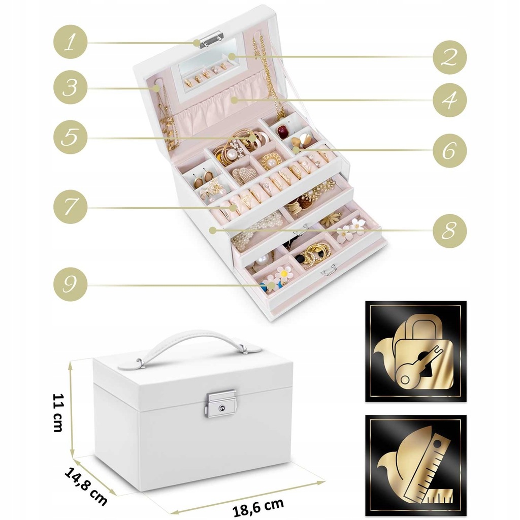 Szkatułka na biżuterię MS-700 Massido - biała, Massido, 670003.590389061057