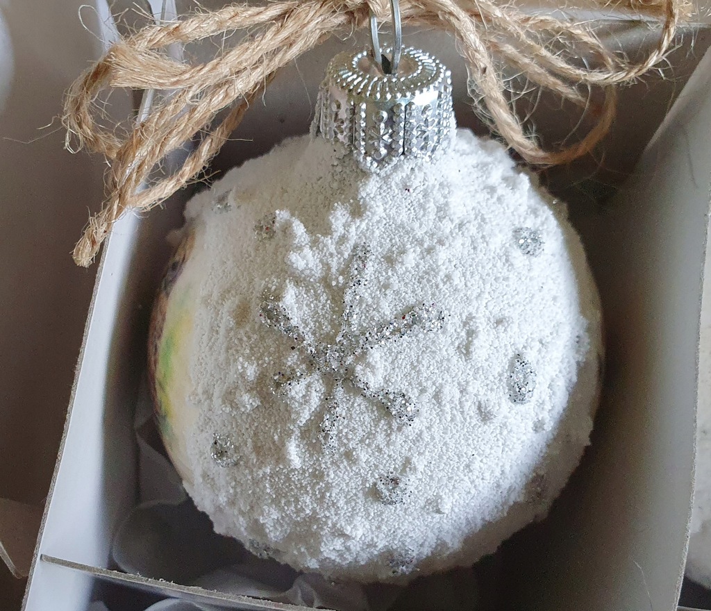 Oferujemy Państwu ręcznie wykonany zestaw 6 szklanych bombek, każda o średnicy 6cm/60mm.