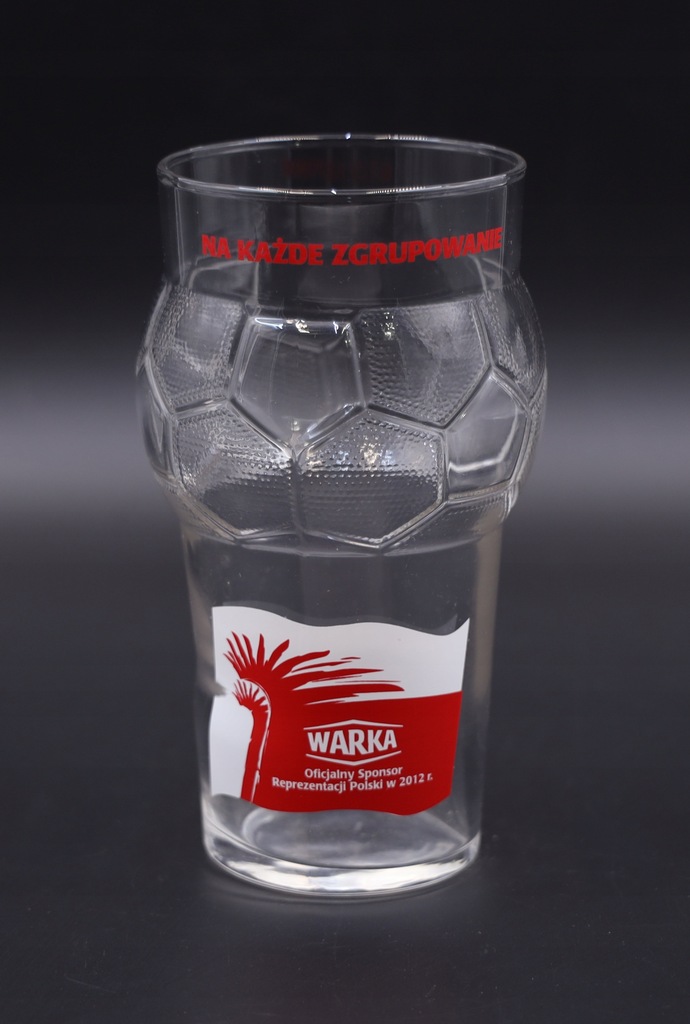 Szklanka do piwa Warka - oficjalnego sponsora Reprezentacji Polski w 2012 r. Wymiary: 16 x 8,5 cm. Polecam kolekcjonerom