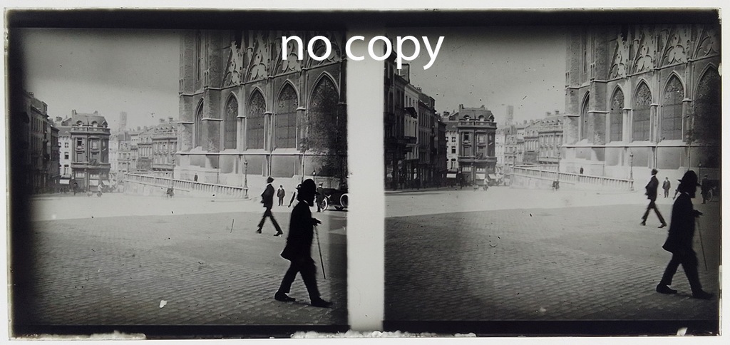 Stary, oryginalny szklany diapozytyw stereoskopowy w formacie 6 x 13 cm