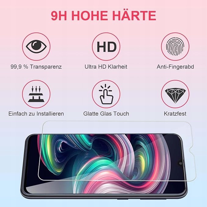 - Twardość 9H: zabezpieczenie ekranu Samsung Galaxy A20E jest wykonane z materiału o twardości 9H, który chroni ekran przed codziennymi uszkodzeniami, takimi jak kurz, olej i odciski palców, a także zapewnia pewną ochronę w przypadku upadku