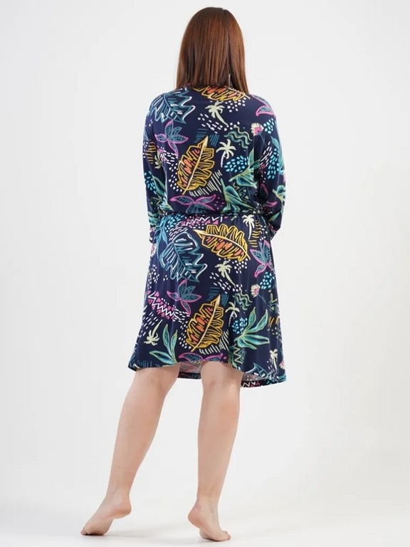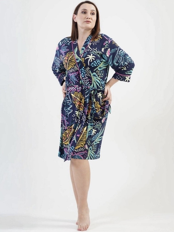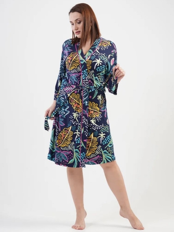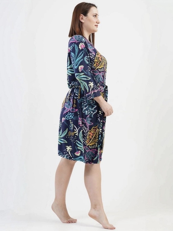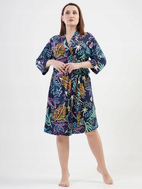 Szlafrok z wiskozy z rękawem 3/4 długości, na zakładkę. Rozmiary od 1XL/46 do 4XL/52