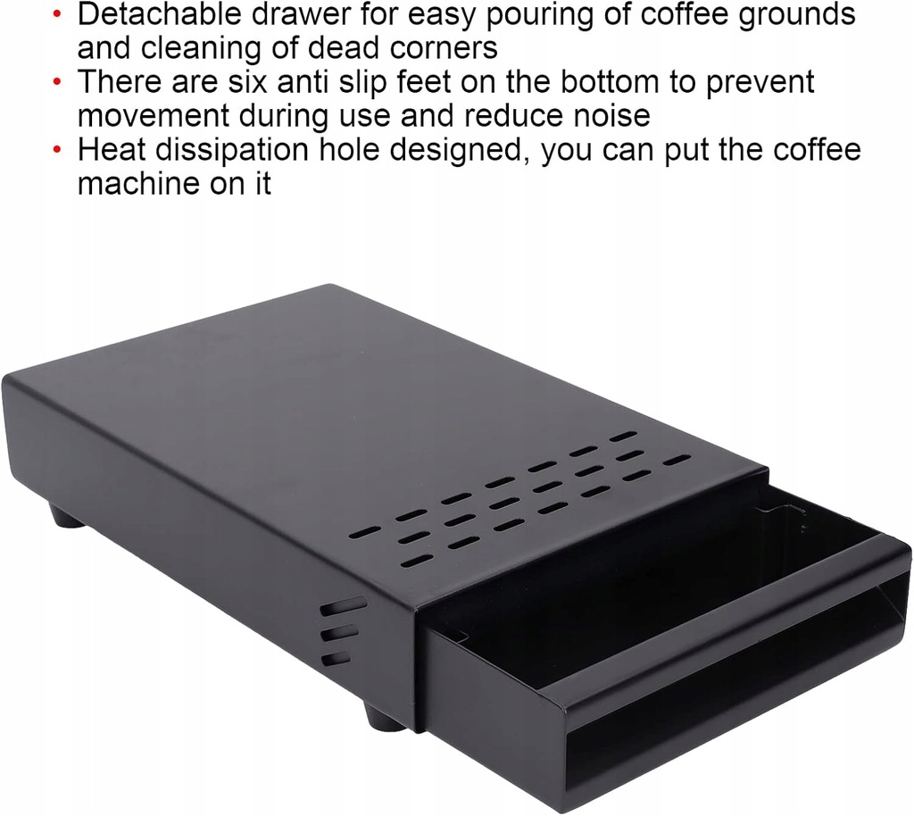 - [Typ szuflady] Odłączany typ szuflady, łatwy do wyciągnięcia, wygodny do wylewania fusów i czyszczenia martwych rogów i brudu, lewy i prawy bok oraz górne otwory chłodzące są zaprojektowane do łatwego rozpraszania ciepła.