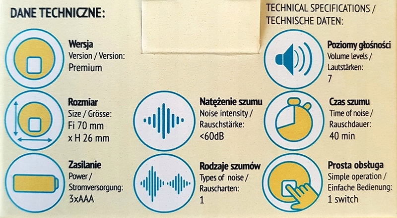 Generator szumu włącza się poprzez naciśnięcie przycisku znajdującego się na urządzeniu. Jednokrotne, krótkie naciśnięcie przycisku uruchamia szumienie. Po 40 minutach szumienia urządzenie wycisza się i automatycznie przechodzi w 3-godzinny tryb czuwania. Jeśli podczas 3-godzinego trybu czuwania dziecko zaczyna płakać, urządzenie automatycznie uruchamia szumienie na kolejne 20 minut. Cykl ten powtarzany jest do momentu wyłączenia urządzenia. Urządzenie można wyłączyć na 2 sposoby poprzez naciśnięcie przycisku lub nastąpi ono automatycznie, jeśli płacz nie zostanie wykryty podczas 3-godzinnego trybu czuwania.