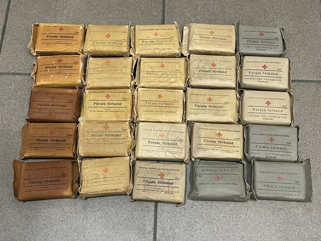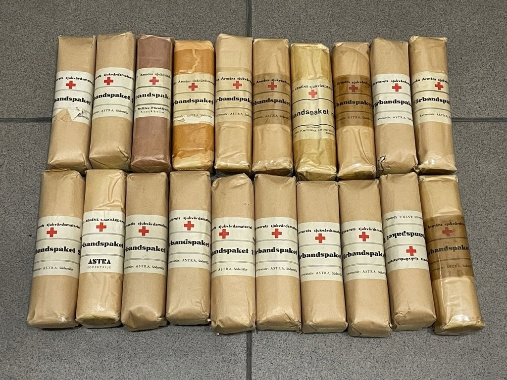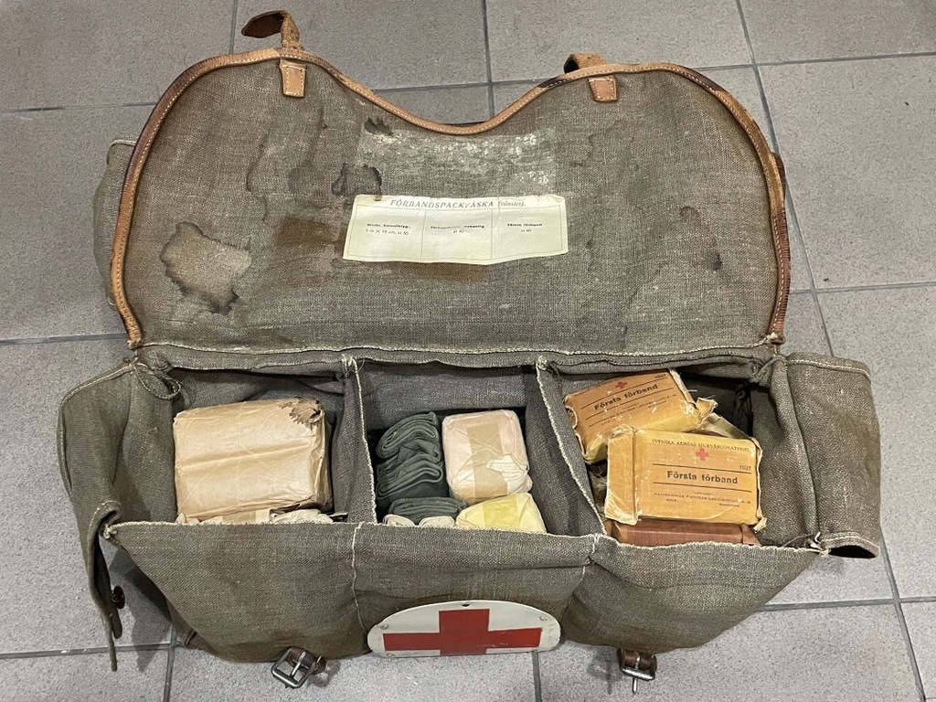 SZWEDZKA TORBA MEDYCZNA Z ORYGINALNYMI OPATRUNKAMI MEDYCZNYMI PRODUKOWANYMI DLA SZWEDZKIEJ MARYNARKI WOJENNEJ - II WOJNA ŚWIATOWA - BARDZO RZADKIE
