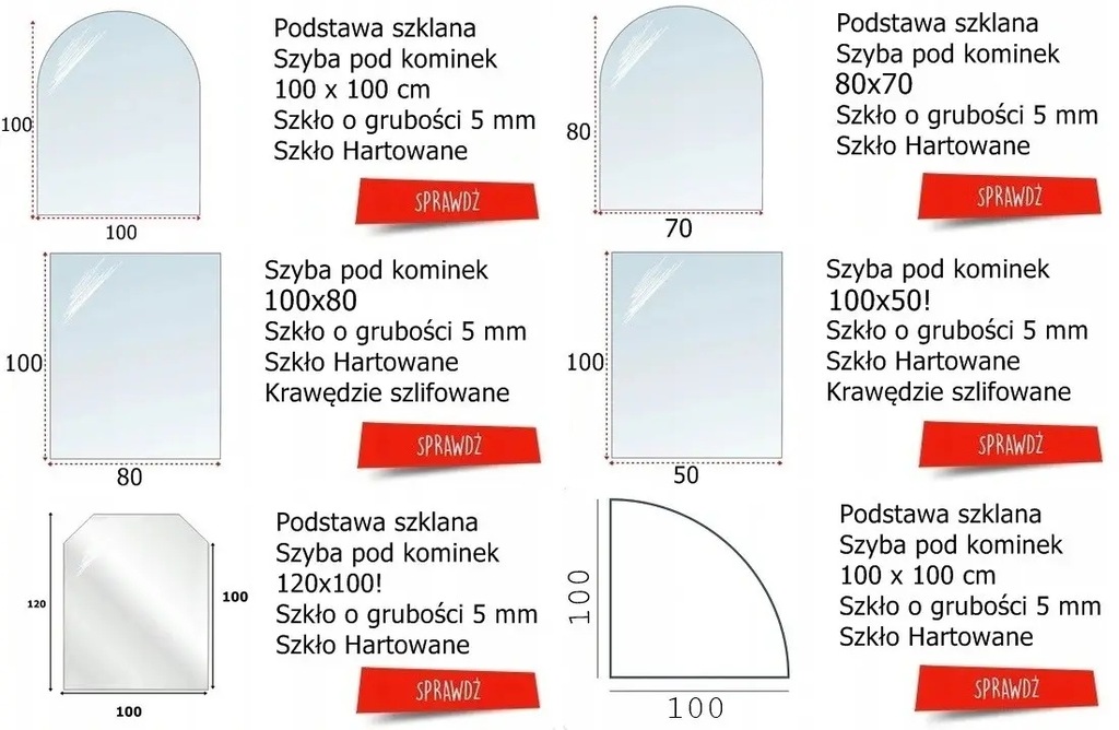 Podstawy z hartowanego są odporne na uszkodzenia i zarysowania, wytrzymują ciężar nawet do 500 kg, a dla poprawy bezpieczeństwa i estetyki krawędzie zostały zaokrąglone i wypolerowane. Oferowane szyby hartowane podchodzą z polskiej hartowni, zostały sprawdzone w specjalistycznym ośrodku testowym. Szyby sprawdzają się idealne pod piecami typu koza, a także kominkami. Krawędzie szyb zostały stępione i są całkowicie bezpieczne co daje możliwość użycia szyby jako osłona paleniska.