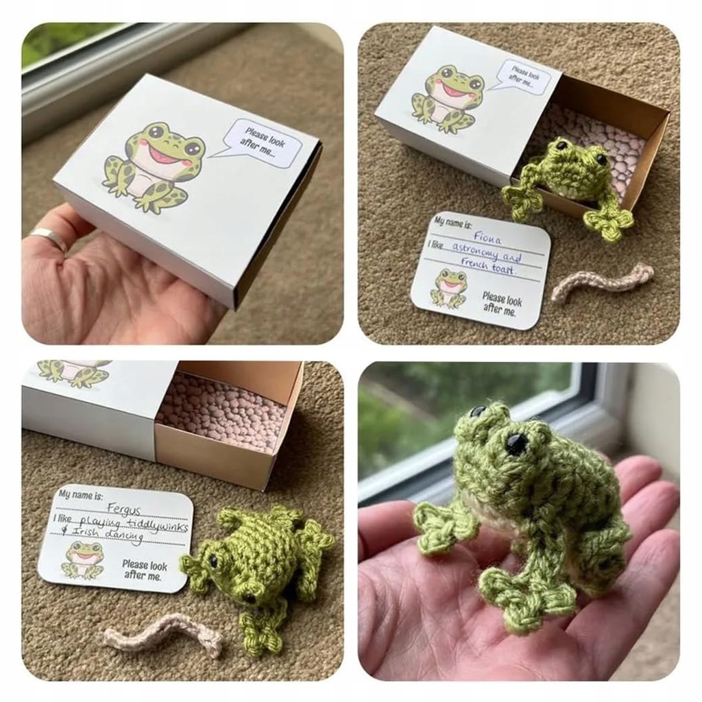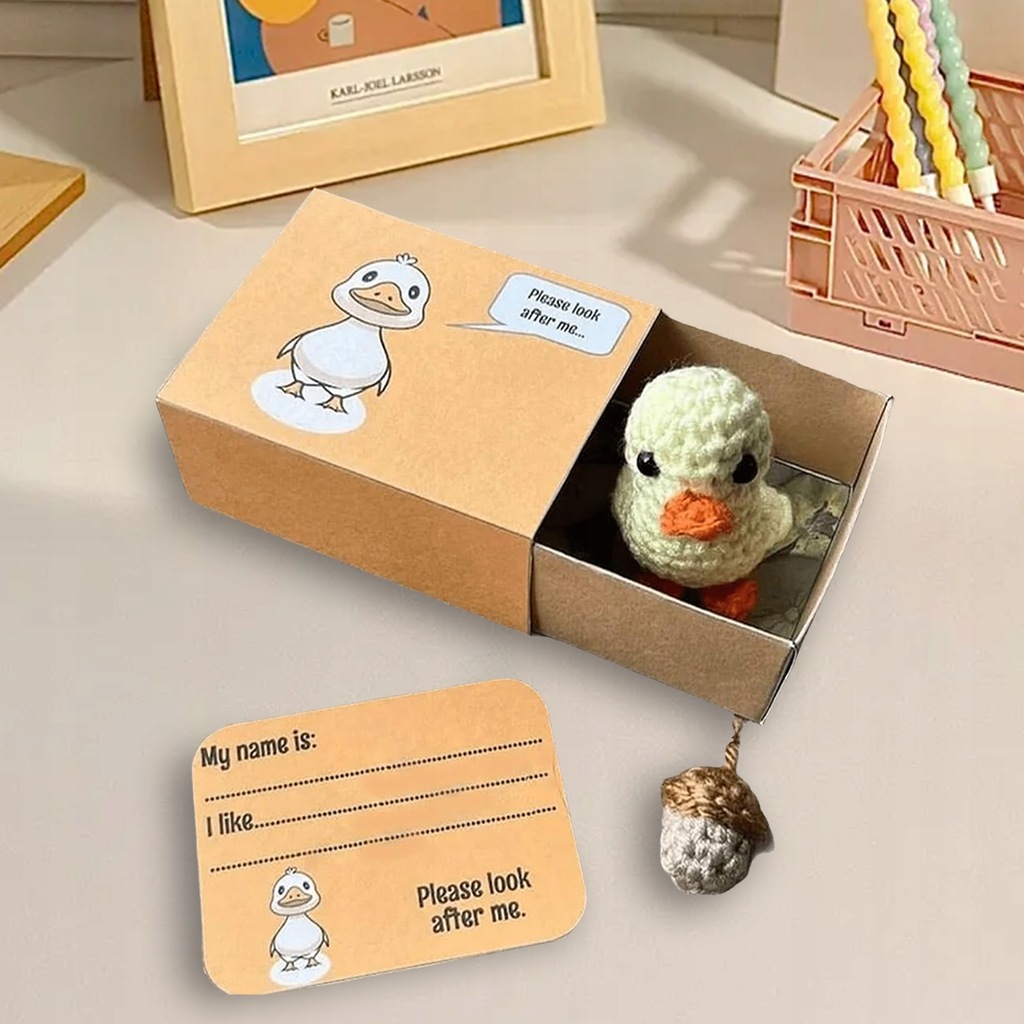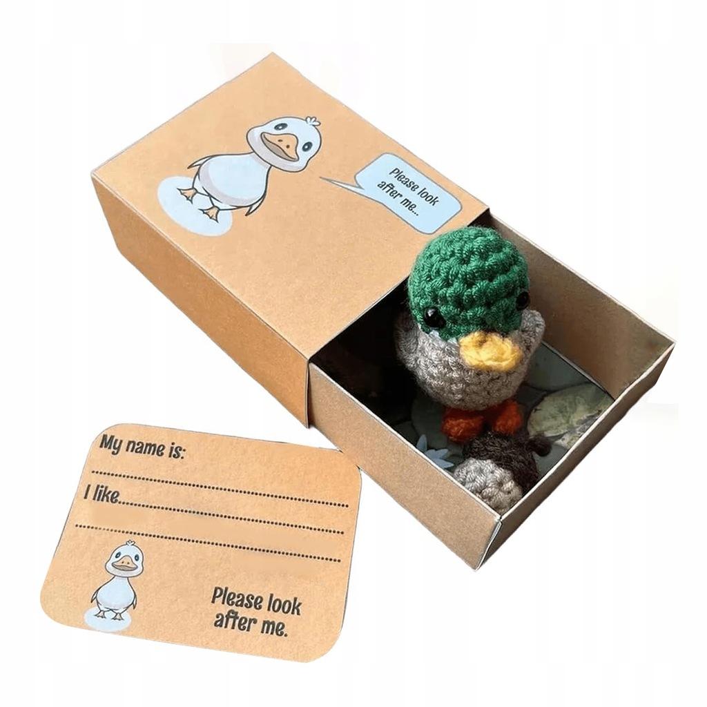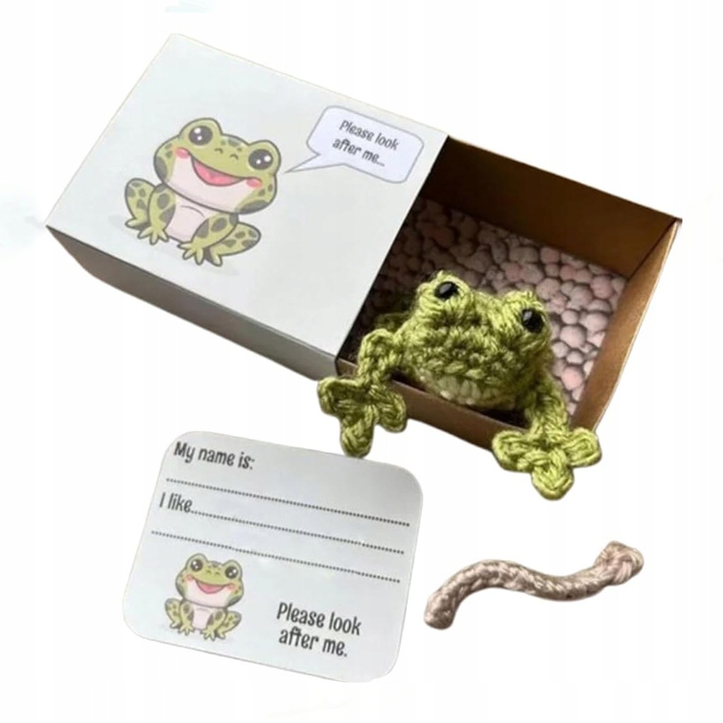 Bezszwowe szydełkowe zwierzątko w kształcie pudełka zapałek — wybierz spośród 9 zachwycających stylów szydełkowych zwierzątek w kształcie pudełka zapałek. Każde zwierzątko ma własne pudełko i kartę do personalizacji, dzięki czemu możesz nazwać swojego szydełkowanego towarzysza i wymienić jego ulubione potrawy. Dziel się miłością i optymizmem z tymi ujmującymi lalkami sentymentalnymi.